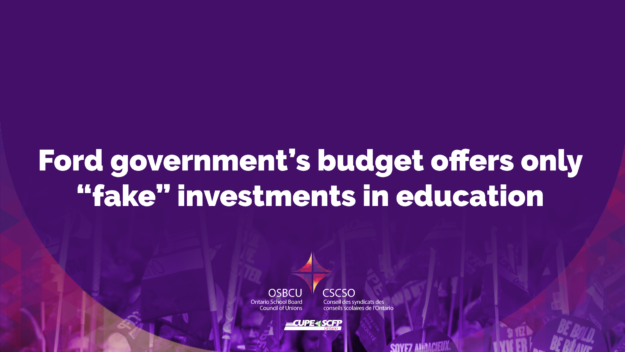 The critical work of CUPE education workers in the public, catholic, elementary and French school boards are often undervalued and overlooked during the bargaining process. Today, CUPE Ontario stands with our 55,000 school board workers calling on the Ford Conservative government to make it a priority to resolve the issues in dispute with CUPE. CUPE…